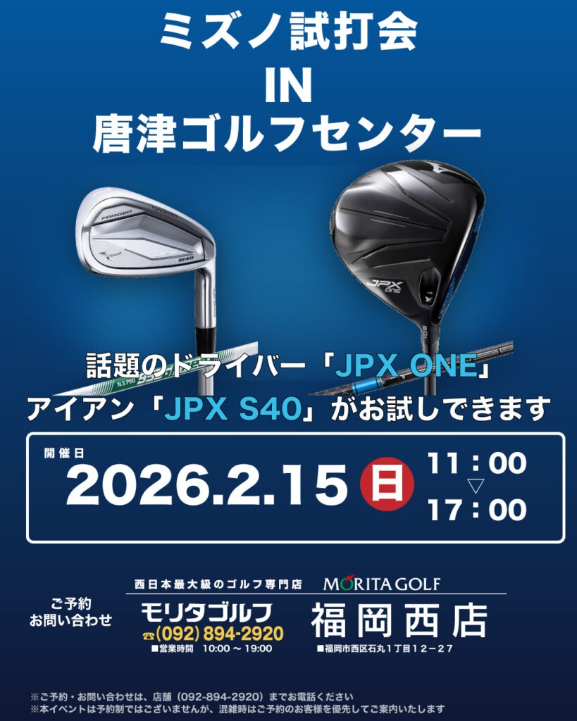 下記日程にて、唐津ゴルフセンターにてミズノ店外試打会を開催いたします。
